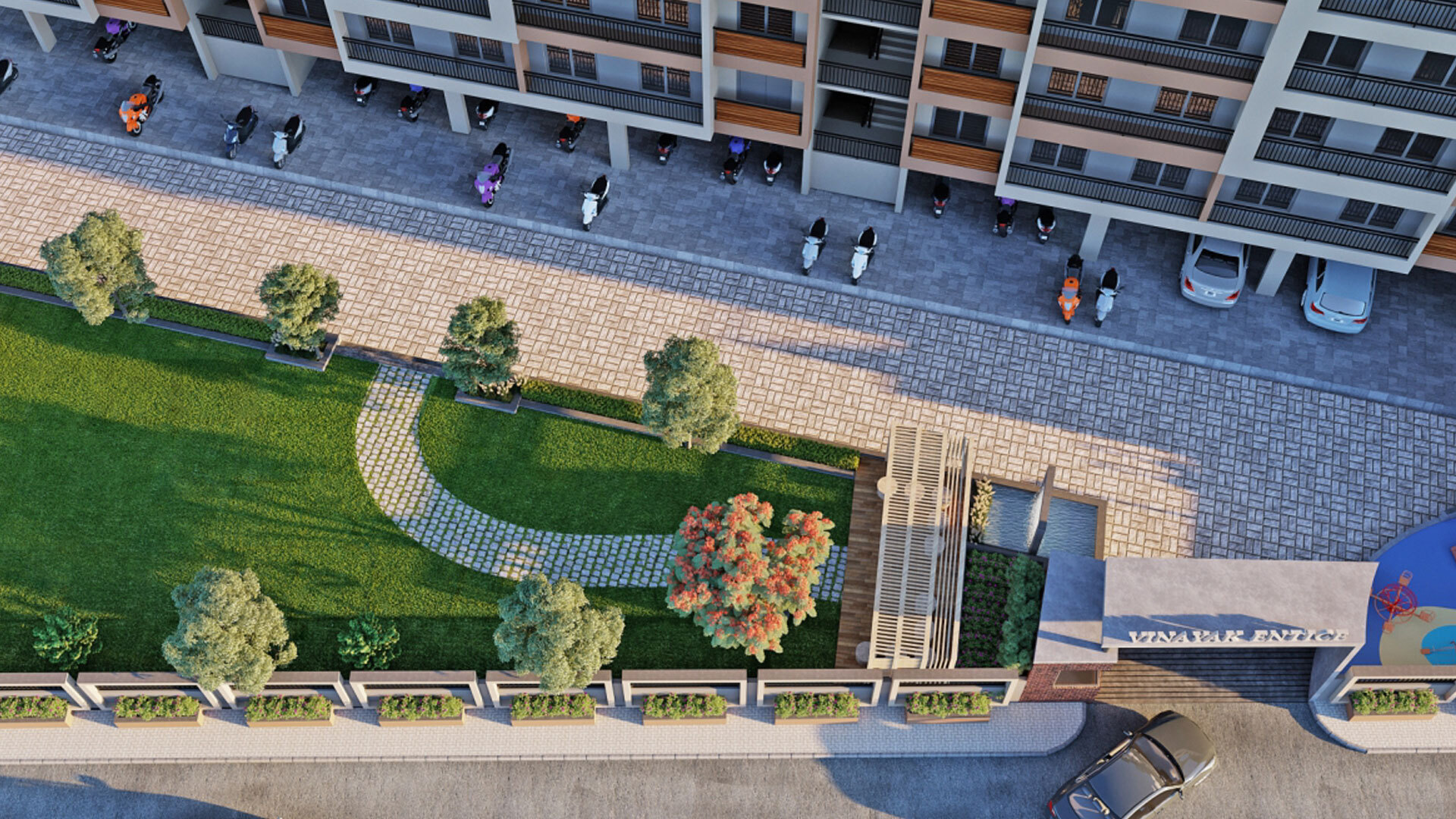 The idea behind Vinayak Entice is to bring you comfortable living. The project has a balanced living & balanced ratio of open area and construction area. You will be pleasantly surprised to witness ample natural light in your apartment. All amenities are designed, considering your needs and within easy reach. Amenities are planned in a way to give your children & elders a healthy and safe environment.